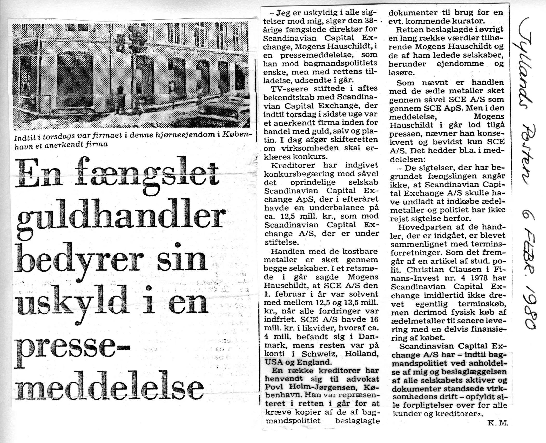 Bagmandspolitiet had for years been stalking Scandinavian Capital Exchange, Criminal commissioner Mogens Kanding from Bagmandspolitiet told Jyllands-Posten, Friday the 1st February 1980, the day after Bagmandspolitiet stormed the companies and my arrest for alleged tax evasion.