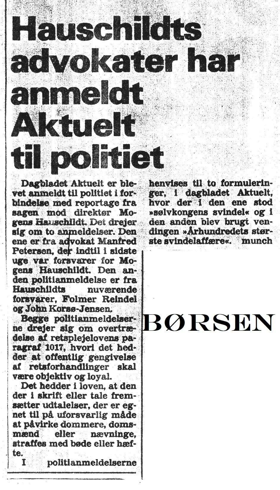 The Danish media failed in its responsibility; journalists made no objective inquiry to determine the real background of the events which took place on the 31st January 1980, moreover the damages which had been caused that first day with the closing of the companies. A few serious journalists, such as Leif Blædel and Rolf Bagger, later became aware of what was taking place, but then it was too late and the damage had been done.