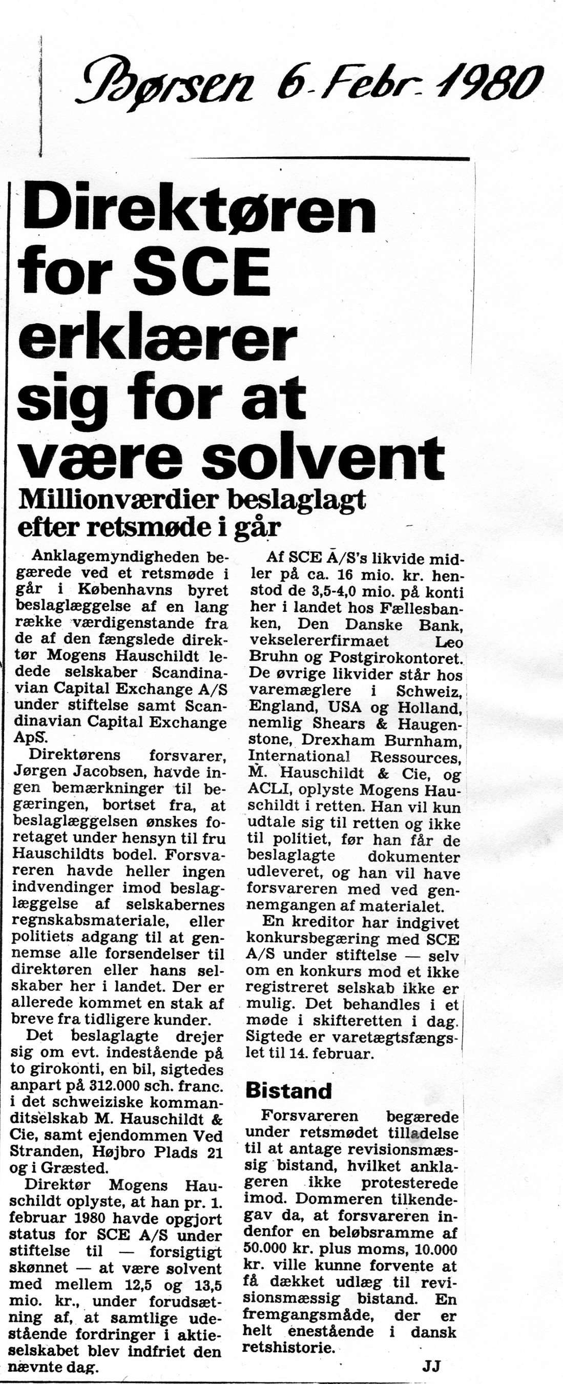 I offered the Commercial Court to bring all my assets to Denmark – they just laughed at me and the members from the Special Prosecution chook their heads as “there is no money” – they did not want me to do this. Nevertheless, it was reported next day in the financial newspaper Børsen on the 6th of February 1980. – Considering this was six days after my arrest, how could this be ignored?