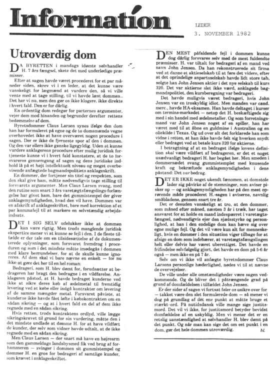 As an editorial leader in Information newspaper reported later (Information Editorial-Leader 3rd November 1982)