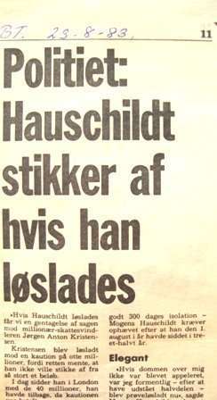 It is true to say that this criminal would never have been found out without Bagmandspolitiet’s raid on SCE and my arrest. His computer fraud, through many years, was very sophisticated and even the banks’ accountants and auditors had, through the years, not found anything wrong. The lies of my connection with a Mafioso intending to set me free etc. (July 5, 6, 7 and 8, 1980) “Mafia gangster arrested in connection with Hauschildt”